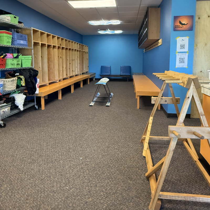 The Mary Peterson Community Room, named in honor of one of Eagle Mount’s past executive directors, is a welcoming space designed for connection and collaboration. Perfect for meetings, trainings, seminars, conferences, or celebrations, it comfortably seats over 75 people and features a large flat-screen smart TV, rolling accessible tables, and flexible seating. An adjoining adaptive kitchen makes it easy for staff, participants, and guests to cook, share meals, and enjoy time together.